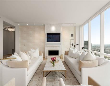 Rise above the city in this 46th floor 3-bedroom, 3.5 bath residence at Millennium Tower, where 3,172 square feet and floor to ceiling glass frame panoramic city views. Start the day in the breakfast nook, host with ease from the wet bar and wine fridge, then unwind beside the fluted Italian marble fireplace as the skyline shifts at dusk. The kitchen is finished with Calacatta counters. Wide plank flooring runs throughout. The primary suite offers a custom built out closet and a spa inspired bath with soaking tub and heated floors. Electronic shades, a built-in Murphy bed, and a flexible storage room add comfort and versatility. 2 garage parking spots ensure top-level convenience. Residents enjoy 24-hour concierge and valet, a private two-story club with dining and lounge spaces, a state-of-the-art fitness center, indoor pool, and curated lifestyle amenities that define full-service luxury living. Select furnishings may be available for separate purchase. Private showings by request.