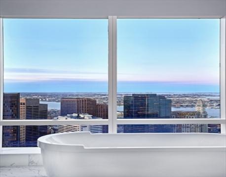 Welcome to PH1B, a pinnacle of luxury living w/ breathtaking panoramic views of the Charles River, Back Bay, & Boston Harbor. This exquisite corner residence features three spacious bedrooms & 4.5 designer bathrooms, including a lavish primary suite w/ dual spa-like baths & ample California closets. The living & dining area, enhanced by floor-to-ceiling windows & an elegant gas fireplace with sunrise and sunset views of Boston's skyline. The chef’s kitchen is a culinary haven equipped w/ a stunning marble island, top-of-the-line Sub-Zero and Wolf appliances, 2 dishwashers, coffee station & sophisticated designer lighting. This smart home boasts radiant-heated marble baths & custom cabinetry, ensuring comfort and opulence at every turn. Experience five-star amenities, including 24/7 concierge service, a luxurious club level w/ owners lounge, theater, 75-foot indoor pool, & fully equipped fitness center. 2 valet or SELF PARK garage spaces.