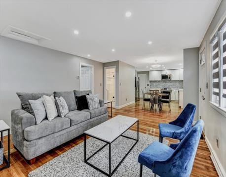 Welcome to 1 Furbush Rd- A Stunning, Home in the Heart of West Roxbury! Located in one of the most desirable neighbourhoods, this beautifully updated single-family home is in close proximity to local amenities, public transportation and the VFW Parkway, step inside to discover a modern layout with 5 bedrooms and two full bathrooms,Two Kitchens, both featuring sleek quartz countertops and brand-new appliances with elegant hardwood flooring throughout the home. The finished basement adds tremendous value and versatility-perfect as an in-law suite, potential ADU, media room, or additional living space tailored to your needs. Private fenced backyard could serve as an ideal entertaining space. Don't miss out on this opportunity!
