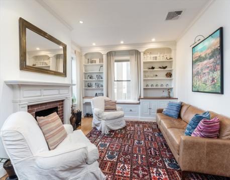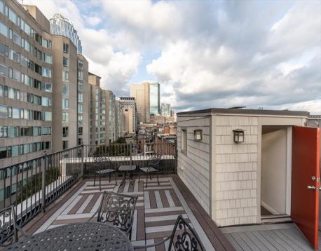 Beautifully renovated and impeccably maintained spacious condo located on the cusp of the South End and Back Bay. This home is perched at the top of a classic brownstone with a sun-filled stunning southwestern exposure and sweeping views of the Christian Science Museum from the elegant bow front windows. The modern kitchen features a Sub-Zero refrigerator, Bosch dishwasher, custom birch cabinetry, granite countertops, built-in wine fridge and a trash compactor.. The spacious primary suite accommodates a California King bed and includes a walk-in closet, double sinks, and a luxurious two-person jacuzzi tub. Additional features include a wood-burning fireplace, in-unit laundry, central air, and custom built-ins. Enjoy direct access to a common roof deck with city views and a gas grill, as well as locked easily accessible basement storage. Valet garage parking available for rent. Professionally managed, well-established association with very strong reserves and high owner occupancy