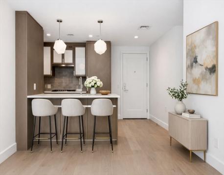 Thoughtfully designed and impeccably finished, this 736 SF one-bedroom residence offers a seamless blend of style and functionality within a modern, open-concept layout, complemented by wide-plank hardwood floors throughout.The kitchen serves as a true centerpiece sleek and sophisticated, featuring custom flat panel cabinetry, elegant quartz countertops, and a peninsula ideal for casual dining or effortless entertaining. Outfitted with premium Bosch appliances, including a gas range and integrated fixtures, the space is both highly functional and visually refined. Residents of Lovejoy Wharf enjoy a full-service lifestyle with 24/7 concierge, doorman, and valet services, along with a curated collection of amenities, including a state of the art fitness center, yoga studio, library, conference space, and resident lounge. The spectacular rooftop terrace offers stunning water views, creating the perfect setting to unwind or entertain. Located just steps from TD Garden & North Station.