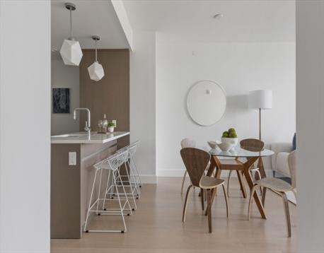Ready for immediate occupancy, this elegant one-bedroom residence at Lovejoy Wharf offers beautiful waterfront views and refined city living. The open-concept kitchen features a peninsula island ideal for dining and entertaining, complemented by wide-plank hardwood floors and a spacious living and dining area filled with natural light. The marble bathroom includes a double vanity, soaking tub, and separate glass-enclosed shower. The generously sized bedroom comfortably fits a king bed, and an in-unit washer and dryer provide added convenience. Residents enjoy premier amenities including 24-hour concierge and doorman services, a state-of-the-art fitness center, rooftop terrace with lounge seating and grilling areas, entertainment lounge with game room, children’s playroom, and dog spa. Ideally located steps from North Station, the Harborwalk, parks, and top dining destinations, offering the perfect balance of vibrant city living and serene waterfront views.