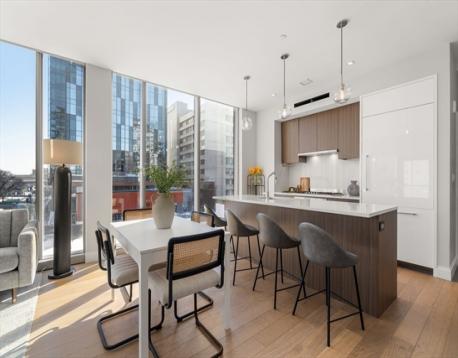 Unique 2 Bed corner unit opportunity at 100 Shawmut- Sun filled layout with floor to ceiling windows outfitted with window treatments & private outdoor space. Steps from the common garden terrace on the 3rd floor with 1 parking space & 3rd floor interior storage unit. The open concept floor plan spans over 1100 sq ft with ample closet space & 2 king size bedrooms with custom built closets. The modern kitchen features fully integrated Thermador appliances & Miami White Silestone counter tops with spacious island perfect for entertaining. Enjoy the convenience of personal ultra-luxury concierge services, lobby lounge, great room, library, private dining room with entertaining kitchen, caterer's kitchen, activity lounge, billiards room, children's playroom, pet spa, fitness/wellness center, 3rd floor courtyard, rooftop sky lounge and The 100 Club equipped with gas grills and fire tables directly facing the Back Bay-perfect for entertaining. Washer/dryer in Unit. Pet Friendly