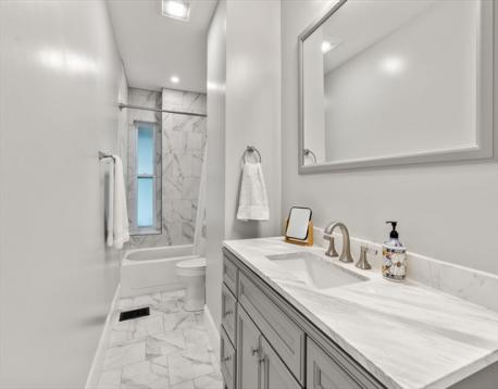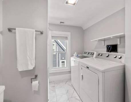 Welcome to 103 Belgrade Ave, Residence 2 - a recently renovated duplex offering almost 1500 sqft in the heart ofRoslindale Square. This spacious condo features 3 beds, 2 full baths, in-unit laundry, assigned parking & additionalprivate storage in basement. The sun-drenched living room features a bay window, recessed lighting, high ceilings, andseamlessly leads into a spacious eat-in kitchen with elegantly appointed white shaker cabinets, granite countertops, andstainless steel appliances. One bedroom & full bathroom complete this level. The second level offers 2 bedrooms, 1 fullbathroom & laundry room. With two heating & cooling zones, hardwood floors throughout, an abundance of storage, &shared backyard, this home offers the best of city living. Just minutes to Roslindale Square, the Commuter Rail, cafes,shops, restaurants, the Arnold Arboretum, and arguably Boston's best farmer's market every Saturday from June toNovember - life here will be nothing short of vibrant & full.