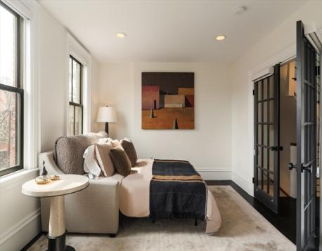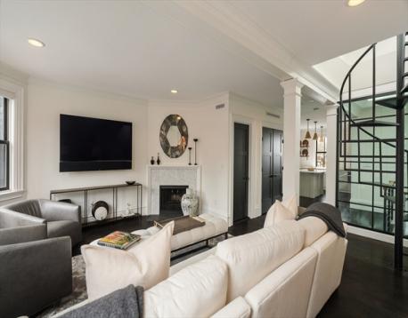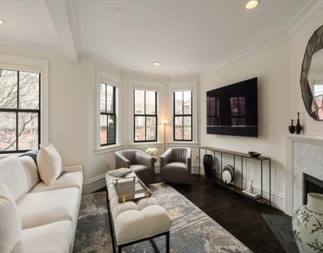 This sophisticated Golden Triangle penthouse has been redesigned to offer every comfort and a sense of privacy rarely found in the heart of a city. Reconfigured in extensive recent renovations, the building now comprises 2 homes, each with direct entry from stylish foyer. In addition to the interior transformation, the exterior has undergone a meticulous restoration - new roof & roof deck, front & rear repointing, new slate mansard, new copper gutters and more. In the unit: the awe-inspiring top floor serves as a stunning entertaining space with skylit stairwell and landing enclosed by a wall of glass. Beautiful, bright custom kitchen-dining area features craft millwork and premium appliances. See the Back Bay skyline from the living room or enjoy grand panoramic views from the roof deck. Plus: Architectural Digest-worthy powder room and 2 well-integrated storage spaces. Downstairs: 2 spacious bedrooms with custom closets and 2 immaculate full baths. Seller offering 1yr parking credit.