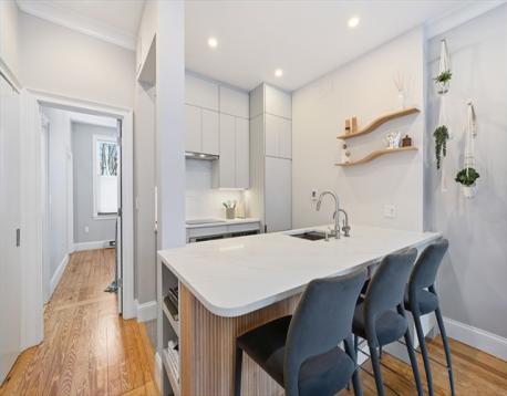 A perfect blend of historic character and modern amenities.A rare opportunity to own a truly turnkey, parlor-level residence in Boston’s South End, featuring deeded off-street parking and a 2024 award-winning complete renovation.Set within a classic brownstone, this one-bedroom home offers soaring ceilings, hardwood floors, exceptional natural light, in-unit laundry, and generous closet space, with minimal wear from part-time use.The sleek and contemporary designed kitchen opens seamlessly to the living area and features a spacious quartz countertop ideal for entertaining, along with custom cabinetry, integrated appliances, radiant floor heating, and smart-home controls. The spa-like bathroom reflects the same elevated level of finish and thoughtful functionality.This pet-friendly home also boasts an exceptionally low HOA monthly fee, all-electric systems, and convenient access to downtown Boston, major highways, and all that the South End and the city have to offer.