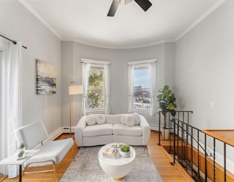 Absolutely incredible Roslindale Village location, just steps from the best that this amazing community has to offer, including top restaurants like Sophia's Grotto, Delfino Restaurant, Effie's Kitchen and so much more. Just a stone's throw to the Roslindale commuter rail station (Needham Line) which is only three stops to Back Bay Station (11 minutes!) and 4 stops to South Station (16 minutes!). This spacious 1 bedroom has parlor level ceiling height, a beautiful decorative fireplace, loads of original detail, AND assigned off street parking! Duplex layout creates wonderful separation of space for a couple. Large kitchen, loads of light, updated boiler and so much more! Condo association offers an amazing private outdoor pool and patio area. Truly a unique offering at an A-plus location!