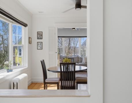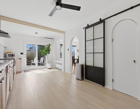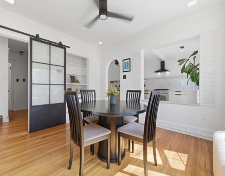 Bright and inviting, this updated two-bedroom condo offers a perfect blend of modern style and classic charm just a quarter mile from Roslindale Square. Enjoy an open, sun-filled layout featuring a sleek, renovated kitchen with stainless appliances and ample workspace, a spacious dining room with classic built-ins, and a comfortable living room framed by large windows. Glass doors lead to a generous private deck - ideal for relaxing, dining, or entertaining. Thoughtful updates, hardwood floors, and great natural light make this home truly move-in ready. All just moments from shops, restaurants, the farmers market, and transit options that define Roslindale living.