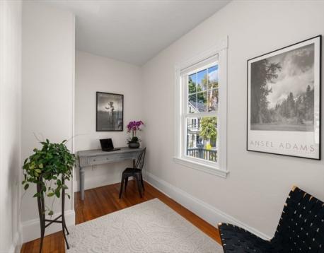 This sun-filled, 2nd floor, 1170 sq foot, 6 room condominium is located in a prime JP neighborhood, just a few blocks from Jamaica Pond, the Arnold Arboretum, the Stony Brook Orange Line T station and shops/cafes along Centre Street (Tres Gatos, Whole Foods, etc.) Spacious living room, formal dining room, 2 bedrooms, office/den, eat-in-kitchen with stainless steel appliances and granite counter top plus a separate pantry for extra storage and coffee bar complement this home. Architectural details include deep moldings, pocket doors, curved bays, and heart pine floors. Garage parking, Central A/C, large private deck, replacement windows, laundry in building.