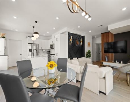 EXCEPTIONAL SINGLE-LEVEL CORNER residence with ELEVATOR in the heart of Roslindale Center. This sophisticated 2-bedroom, 2.5-bath home offers an elevated living experience. FLOOR-TO-CEILING WINDOWS that flood the space with natural light & 3 PRIVATE BALCONIES create seamless indoor-outdoor living.Thoughtfully designed for comfort & style. Expansive living areas, refined finishes, and a layout that feels both open & private. Each bedroom offers an EN-SUITE bath, the half bath adds convenience for guests. The corner positioning provides added PRIVACY and a sense of EXCLUSIVITY rarely found at this price point. Enjoy the ease of 1 GARAGE PARKING space in the building with plentiful parking & EV charging nearby. Ideally located close to the commuter rail, vibrant restaurants, boutique shopping, and everyday essentials. A Lux Seaport Style Condo just Minutes to downtown Boston, yet perfectly set in one of the city’s most charming neighborhoods. Built to impress, and built to last.