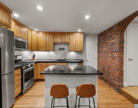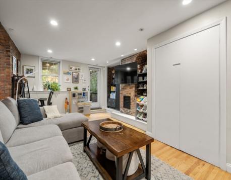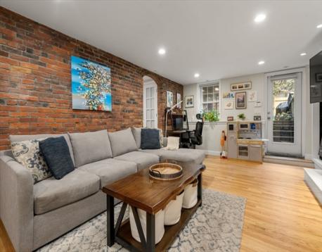 Beautifully renovated garden-level home on one of the most desirable streets in the South End. This charming space overlooks a serene private patio with new pavers and a sun-drenched, landscaped and fenced in backyard, private for the use of this condo and one other unit. Inside, the home exudes character with exposed brick walls, complemented by gleaming, refinished hardwood floors. The flexible layout offers the option to have two bedrooms, while one can easily be used as a home office. The open living and dining area flows seamlessly into an updated kitchen featuring stainless steel appliances, red birch cabinets, a spacious island, gas stove, and poured concrete countertops—a modern touch with timeless appeal.The spa-inspired bathroom invites relaxation with its whirlpool tub, radiant heated floors, and luxurious finishes, plus new washer/dryer in unit. This condo combines charm and convenience, all just steps from the vibrant South End’s renowned restaurants and cafés.