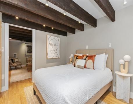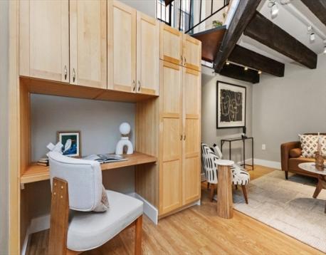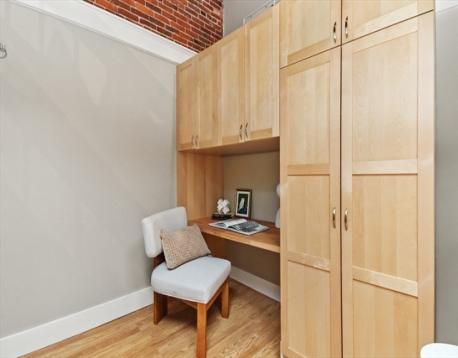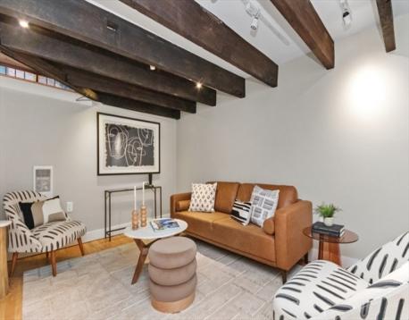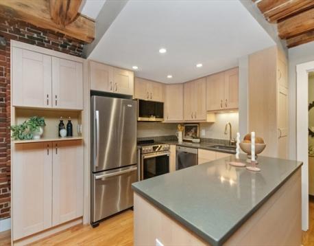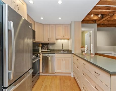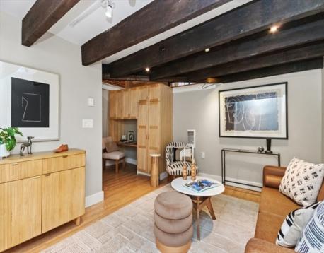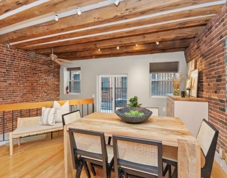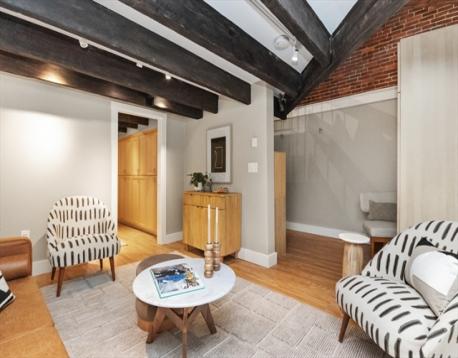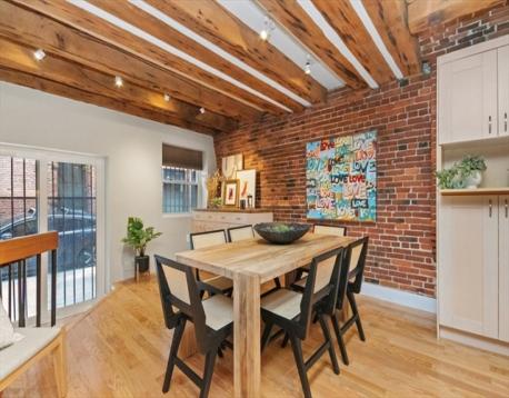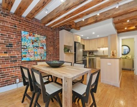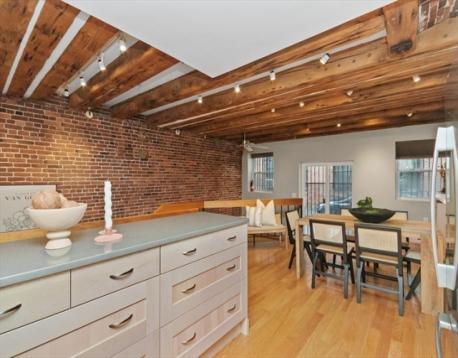 Beautiful Boston Waterfront duplex condo featuring exposed brick and beams. This loft like home is ideal with main level offering open/updated kitchen and dining areas with hardwood floors and brick accent walls. Kitchen features newer appliances, induction stove and Silestone countertops. Direct access through sliders to beautiful North End Alley. Full bath completes the top floor. Downstairs you'll find another living space with a built-in work from home space and large bedroom with loads of closets/built ins for storage. Boutique building, self-managed, owner occupied, and pet friendly and convenient in-building laundry. On The Waterfront in The North End minutes from Faneuil Hall and surrounded by the Seaport District, Greenway, North/South Station, downtown Boston, and all major transportation points. Taxes do not reflect residential exemption ($3984.21)