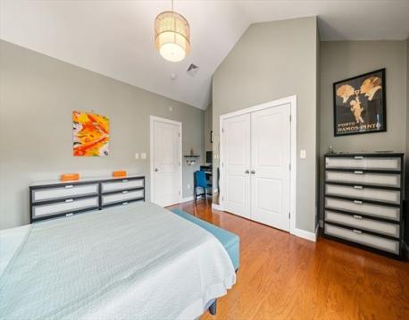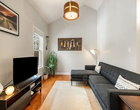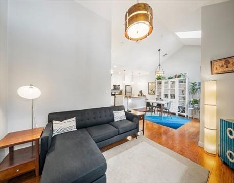 High vaulted ceilings and abundant sunlight define this top-floor condo. The open-concept living, dining, kitchen layout creates an exceptional sense of space and character making this one-bedroom, one-bath home seem far larger than its 805 sq ft. A granite breakfast bar separates the kitchen and dining area, creating an ideal spot for casual meals or extra workspace. The dining area features a skylight and French doors to the private balcony, perfect for relaxing. Beyond, the living room offers a comfortable and flexible setting for everyday living and entertaining. Additional features: in-unit deluxe Miele washer and dryer; an attic and private basement storage; one off-street parking. The condo fee covers heat and hot water. Ideally located one block from Green Street T Stop and the SW Corridor Bike Path, with easy access to Bus 39 to Longwood Medical Area or Back Bay. Enjoy Jamaica Plain's nearby shops, restaurants, bakeries, pubs, and parks, Jamaica Pond and the Arnold Arboretum.
