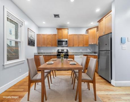 This substantial three-family residence presents as an attractive property offering a compelling opportunity for discerning proprietors as rental income, a strategic condo conversion or owner occupancy. Each of the 3 expansive units features a modern layout, benefiting from a comprehensive gut renovation performed circa 2006. Modern mechanicals include separate forced-air gas heating and central air conditioning for every unit, alongside the convenience of private in-suite laundry hook-ups. The exterior provides an advantage with two dedicated parking spaces at the rear, making an attractive addition to any investment portfolio or condo conversion project. Strategically located for high rental demand, the home is ~0.5 miles from both the Green & Orange Line. It offers effortless access to the VA Medical Center, Longwood Medical Area, and several major universities. The property can be delivered vacant in June, allowing for market-rate leasing or any desired improvements of all units.