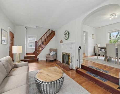Single Family! Lovely, Center Entrance Colonial - 3 Bedroom, 1 bath. The fireplaced living room serves as a central gathering space, a unique barrel ceiling adds character and a bit of New England charm! A lovely screened in sunporch is accessible off the living room, as are the dining room and kitchen areas, hardwood floors throughout, gas heat and appliances, updated 200 amp electrical. Upstairs, an exterior deck is accessible through one of the home's lovely 3 bedrooms. A private driveway offers ample off street parking and leads to a generous sized, fenced in backyard. Brand new, stone front steps, vinyl handrailings and entrance walkway have been added. Located on a lovely, tree lined street, close to all - both West Roxbury Center & Roslindale Square, area restaurants, Arnold Arboretum, Faulkner Hospital, Longwood Medical area, public transportation, both the T and commuter rail, area parks, schools and places of worship! Ready for immediate occupancy - Don't Wait!!