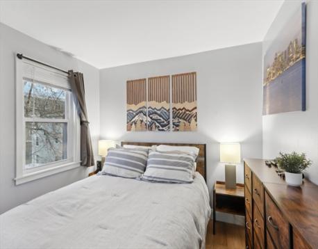 Renovated penthouse one-bedroom in the heart of South Boston, steps from West Broadway. This bright top-floor home features an open layout with high ceilings, a modern white kitchen with quartz counters, peninsula seating, and new stainless steel appliances. The bedroom opens to a private roof deck—perfect for relaxing or entertaining. Updated bath with soaking tub. Dedicated laundry. Close to restaurants, cafés, shops, and public transit. A stylish Southie gem ready for its next owner.