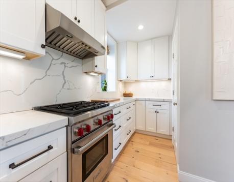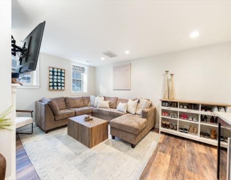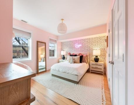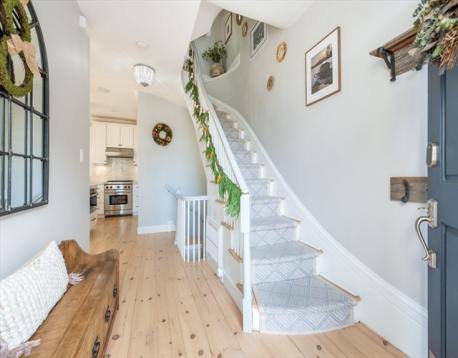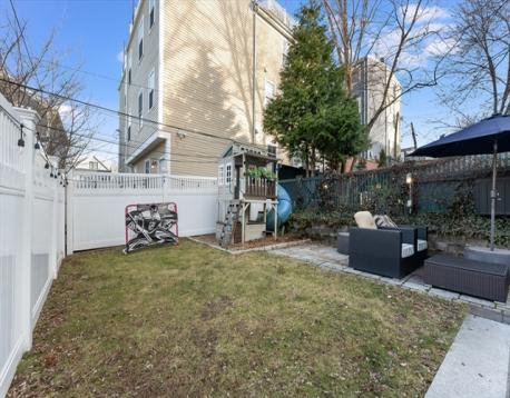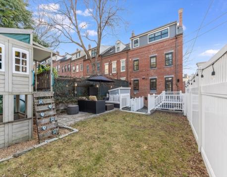 This stunning single-family brownstone spans four thoughtfully designed levels. The main living level is anchored by a truly exceptional kitchen designed to impress. Outfitted with abundant counter space & extensive storage, it features multiple windows overlooking the private backyard, filling the space with natural light. At its center, an oversized island, more akin to a dining table, comfortably seats six. A fireplace adds warmth & charm, making this level as inviting as it is functional.The second floor offers three bedrooms, a full bathroom & laundry. The top floor is dedicated to the primary suite. Complete with walk-in closet, a cozy sitting area with its own fireplace en-suite bath. The finished lower level adds incredible versatility, featuring a full bathroom & mudroom area—perfect for everyday organization, additional living space or a home gym. With four levels of living, a highly functional layout and did we mention... PARKING! This is a must see & a rare opportunity.