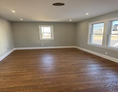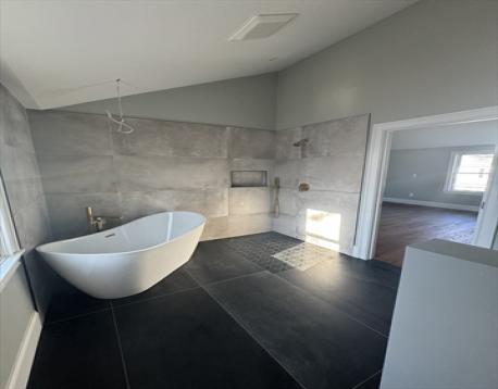 Striking 4-bedroom, 3.5-bath home offering approx. 3,200 sq ft of living space.Full gut renovation. The first floor features an open-concept layout w/ custom-cabinet kitchen, large dining area, and spacious living room with direct access to an expansive 180-degree rear deck overlooking the yard. The second floor offers four generously sized bedrooms, including a primary suite with tall ceilings, walk-in closet, and private bath with double vanity, tiled shower, and soaking tub. Second-floor laundry for added convenience. The fully finished basement provides flexible bonus space ideal for a gym, office, playroom, media room, guest area, or potential in-law setup. Corner lot with driveway parking and garage. Equipped with central heat and central AC, all new mechanicals, new roof, siding, windows, and upgraded electrical and plumbing. Conveniently located near shops, restaurants, parks, and everyday amenities with easy access to major commuter routes, bus lines, the commuter rail, and T.