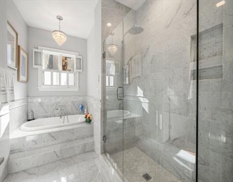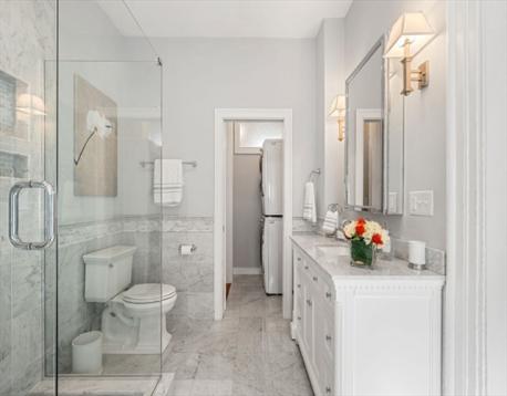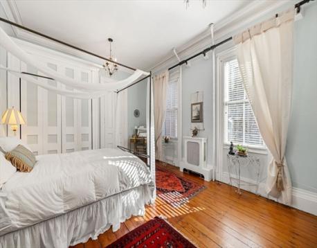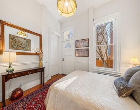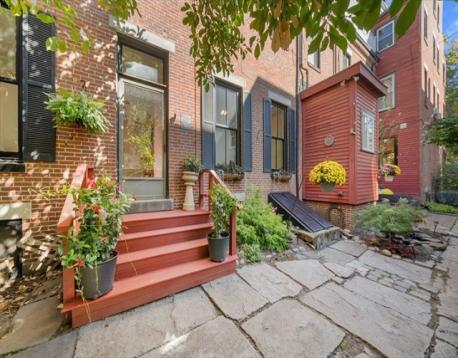 This stunning 2BR/2.5BA,1490sf condo is located in a handsome brick townhome on a gas-lit street situated between Monument Square and town center. This expansive, single-level home blends exquisite historic detail with modern updates and features soaring ceilings, wide pine floors, and beautiful moldings. An elegant powder room is tucked off the foyer. The spectacular chef’s kitchen with custom cabinetry, marble countertops, 6-burner Bertazzoni range, and a large center island with bar seating flows to a grand, light-filled living area w/corner exposure. The regal primary bedroom includes a sophisticated marble en-suite bath w/heated floors. Tucked at the rear is a versatile den w/fireplace and a second bedroom w/private entrance and en-suite bath, creating an ideal home office or guest wing. A story book private garden patio w/mature magnolia tree and climbing apple tree is a highlight. Amenities: C/Air, W/D, private basement storage. 1 car rental pkg. The John Doane House ca.1843.