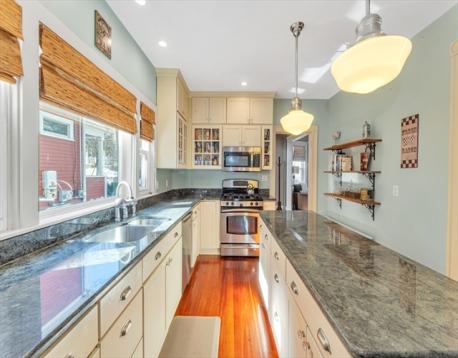 Introducing 12 Leniston Street, a meticulously maintained, quintessential Colonial nestled in the highly coveted Parkway area of Roslindale. This refined residence blends timeless character with thoughtful updates, beginning with an inviting foyer that sets the tone for the quality found throughout. The beautifully updated kitchen features a center island and seamless flow into the elegant dining area, all enhanced by rich original hardwood floors, solid wood millwork, and impressive ceiling height. A generous living room offers an ideal setting for both everyday living and entertaining, with direct access from the kitchen to the private deck, lush yard, and garage. Mature landscaping surrounds the property, creating a serene outdoor retreat. The upper level presents three spacious bedrooms, each offering exceptional closet space, alongside a tastefully updated full bath. A full walk-up attic provides an opportunity for future expansion and value add.