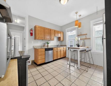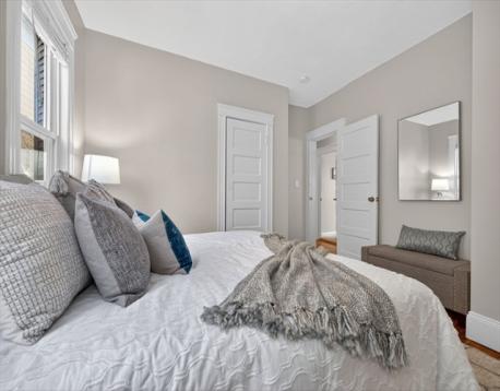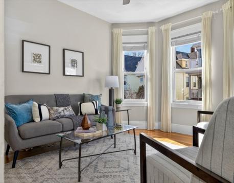 Classic JP charm meets abundant potential at 12 Woodlawn St. This bright, airy 3-bed, 1.5-bath condo sits in a traditional Boston three-decker on a quiet, dead-end street. The circular layout flows from the entry foyer into a sun-drenched living room with a large bay window and a formal dining room featuring an original built-in hutch. An adjacent "flex" bedroom with double doors serves perfectly as a study, nursery, or guest room. The oversized kitchen offers ample storage, an induction range, a butcher block island, and a rare half-bath with in-unit laundry—a major JP bonus. Two additional large bedrooms accommodate king-sized beds. With fresh paint and newly refinished fir floors, this home is move-in ready while offering opportunity to make it your own over time. Just minutes from the Arnold Arboretum, the SW Corridor, and Forest Hills station, it’s a reminder that the best home features haven't changed in a century: good light, solid craftsmanship, and a quick trip to the train.