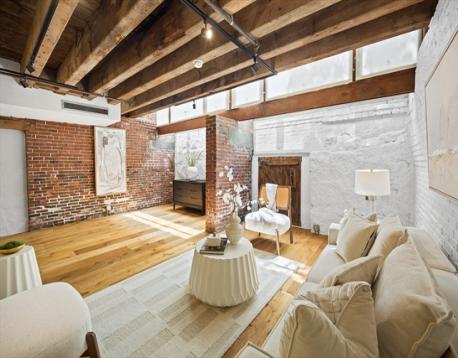 Prime North End/Waterfront location! Rarely available brick-and-beam loft in the architecturally significant McLauthlin Building, known for its striking cast-iron façade. This spacious and stunning 2-bedroom condo features a flexible open layout, ideal for both living and entertaining. Character-rich details include exposed brick walls, timber beams, expansive windows, and gleaming hardwood floors. In-unit laundry, spacious flex kitchen space completes modern convenience. Nestled on a charming tree-lined street, this coveted address offers effortless access to the Greenway, North Station, Financial District, and Downtown. Enjoy world-class dining, quaint neighborhood eateries, and excellent transit options all within reach. Multiple rental parking options nearby. A true urban gem blending historic charm and contemporary comfort.