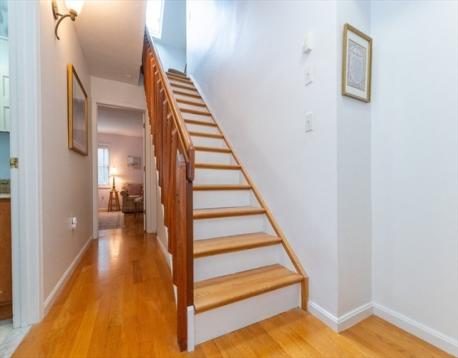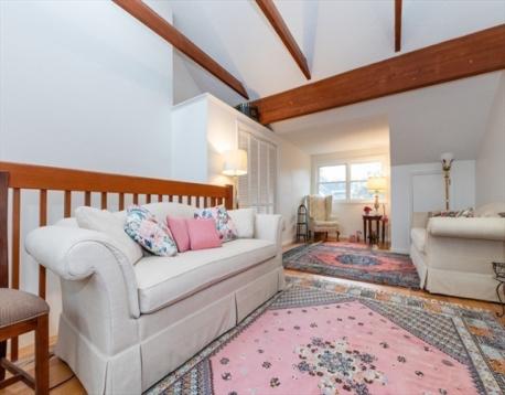 Easy living in this spacious, three level townhouse located in West Roxbury at the Chestnut Hill line. Large, updated kitchen with ample cabinetry and LG appliances, opens to inviting dining area. The living room features a charming wood burning fireplace and sliders to an enclosed private deck, perfect for outdoor entertaining. The second level features 2 good size bedrooms. The primary bedroom offers ensuite bath. Handy 2nd level laundry! Versatile 3rd floor with skylight and exposed wood beams serves as the 3rd bedroom with plenty of additional space for home office/family room. Gleaming hardwood floors and large closets throughout! The exterior envelope has been refurbished, including roof, siding, windows & decks making it a great time to buy. So snap it up! Minutes to West Roxbury's Centre St, commuter rail, shopping, & newly opened Trader Joe's. Close to Chestnut Hill with plenty of shopping, restaurants and the green line. Easy access to Rte. 9, 128 and 95.