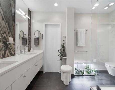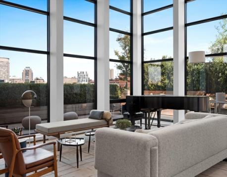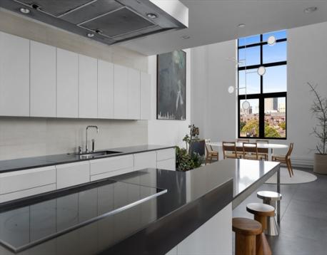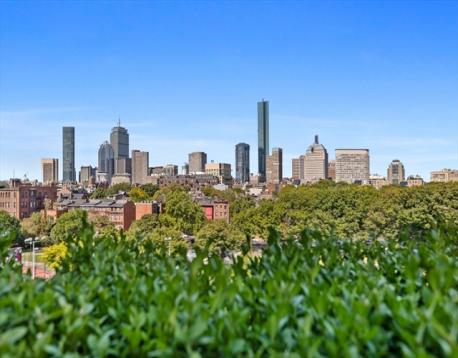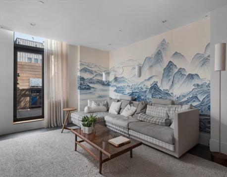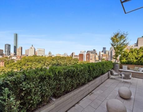 This serene 3-bedroom + den, 2.5-bath trophy penthouse features Landmark Protected skyline views and a landscaped Brazilian IPE hardwood roof deck. With top-quality fixtures and finishes, including Italian Pantano marble, Hestan, Miele, Nanz, and hand-painted wallpaper, this bespoke apartment stands apart from typical new developments, balancing luxurious form with functionality. Spanning 2,808 sqft of interior space and over 2,400 sqft of exterior living, the penthouse boasts 18+ foot ceilings and advanced technology, including fully automated Lutron shades and invisible in-wall speakers throughout. Additional highlights include a soundproof primary suite, radiant heat flooring, a 5.1 surround sound theater, a gas fireplace, and a custom 500 lbs Krieger front door. The outdoor kitchen, temperature-controlled wine storage, vintage teak built-ins, mini home gym, and EV charger-approved parking make this an exceptional offering, showcasing one of the finest renovations in the South End.