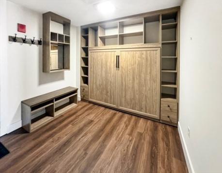 Residence 902 at 121 Portland Street presents an elevated city living experience within a premier boutique building, ideally situated moments from the West End, North End, and Beacon Hill. Spanning 921 sq ft, this thoughtfully designed home features custom-built closets throughout and dramatic floor-to-ceiling windows framing sweeping Boston skyline views. A private balcony, accessible from both the living area and bedroom, offers the perfect setting to unwind above the city.The open-concept kitchen and living space is both refined and functional, ideal for everyday living and effortless entertaining. A versatile bonus area, complete with a built-in Murphy bed, provides flexibility for a home office, den, or guest space. Additional highlights include in-unit laundry, one garage parking space, and a private storage unit, delivering comfort, convenience, and a truly sophisticated urban lifestyle.