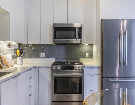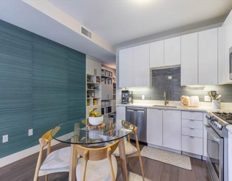 Come home to this modern 2 bed, 1.5 bath home located in The Forecaster, a full-service bldg w/GARAGE PARKING offering residents ease of living. Residence 803 includes a terrace with incredible bird's eye views of the Custom House Tower, downtown Boston and the Boston Harbor. The living room and open kitchen are located adjacent to the terrace. The modern, eat-in kitchen is equipped with stainless Bosch appliances including a gas stove. Both bedrooms feature floor to ceiling windows equipped with electric shades to maximize natural light and privacy. The primary suite offers a large closet with a custom closet system and large, modern, ensuite bath. In-unit laundry is located in the half bath. The hallway features built-in storage cabinets and shelves. 121 Portland is located in the West End with easy access to downtown, Beacon Hill, MGH, TD Garden and North End. Residents enjoy a 24/7 concierge, valet garage parking (available for rent), gym, meeting room, elevators, and bike storage