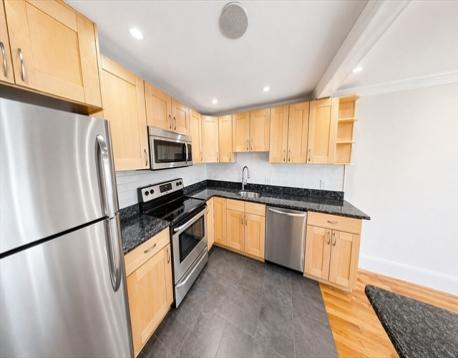 Spacious and sun-filled 1-bedroom condo offering an ideal blend of comfort, functionality, and amenities. This move-in-ready home features an open-concept layout perfect for everyday living and entertaining. The oversized living area flows into a modern kitchen with stainless steel appliances, granite countertops, a breakfast bar, a dishwasher, a disposal, and ample cabinet space. Hardwood floors, recessed lighting, and built-in A/C enhance the space. The large bedroom offers excellent closet space with California Closets, while the updated bath features clean tile and modern finishes. Enjoy 1 parking space and a private outdoor space, plus a professionally managed elevator building with an in-ground pool, on-site super, and strong owner-occupancy. Pet-friendly. Prime location near the 57, 501 & 503 bus lines and Mass Pike.