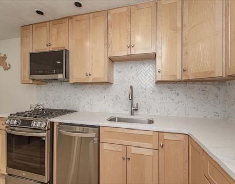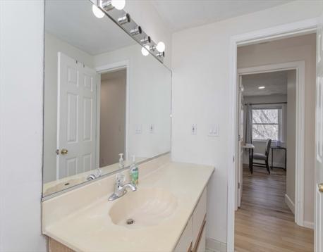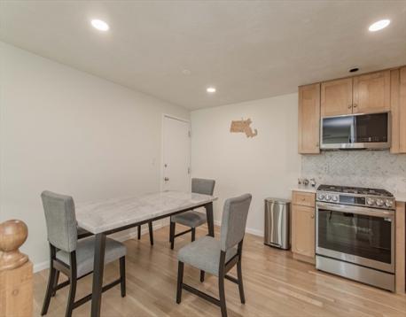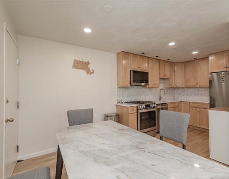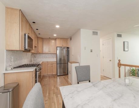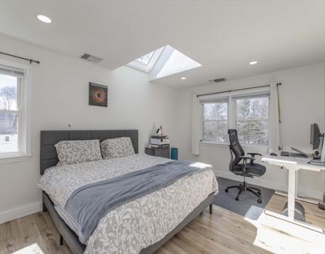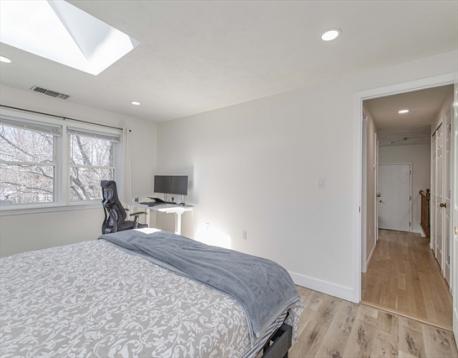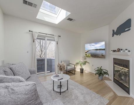 This beautifully updated 2-bed, 2 full bath condo offers 1,068 sq ft of modern, open-concept living designed for both comfort and style. Step inside to discover new wood flooring throughout, a modern kitchen with quartz countertops and stainless steel appliances, and a seamless flow into the spacious living area. The open layout is enhanced by recessed lighting and skylights, filling the home with natural light. Cozy up by the gas-burning fireplace or step outside to enjoy your private outdoor balcony, perfect for relaxing or entertaining. The thoughtfully designed layout includes two generously sized bedrooms and two full bathrooms, offering flexibility for guests, a home office, or comfortable everyday living. Ideally located in West Roxbury, this home provides easy access to public transportation, shopping, dining, and all the amenities of Boston, while still enjoying a neighborhood feel. Just minutes from major routes and the heart of Boston.