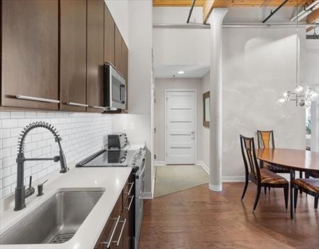 Welcome to the iconic Baker Chocolate Factory Lofts in Lower Mills, where history meets modern design.This meticulous, move-in ready 2 bed, 2 bath condo features soaring ceilings, exposed brick, and oversized factory windows that flood the space with natural light.A sleek, open-concept layout connects the kitchen, dining, and living areas — ideal for entertaining or relaxing. The kitchen is finished with modern stainless steel appliances, streamlined cabinetry, quartz countertops, and a built-in beverage fridge.The spacious primary suite offers a calm retreat with a beautifully updated en-suite bath and large walk in closet.Additional features include in-unit laundry.Residents enjoy access to an on-site gym, lap pool, sauna, and riverside patio with views of the Neponset River.Effortlessly blending industrial character and modern sophistication, this home delivers the best of city living -ready for you to move right in!