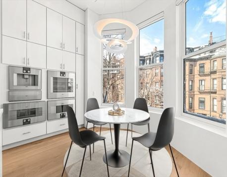 Welcome to 126 Marlborough Street, a luxurious single family residence that combines a historic pedigree with modern livability, privacy, and ideal positioning mid-block between Clarendon and Dartmouth Streets. This turnkey nearly 5,000 sq. ft. four bedroom row house features an attached garage plus driveway parking, glass elevator to access all five floors, two south-facing living spaces with gas fireplaces and grand 11’+ ceilings, a formal dining room with auxiliary kitchen, and primary kitchen with Gaggenau appliances, front-facing oriel windows, and dining area. The floor-through primary suite offers a gas fireplace, two walk-in wardrobe rooms, and two full marble baths with heated floors and spa-inspired wet room. Outdoor amenities include a full-length roof deck under the Boston skyline with outdoor kitchen and gas fire pit, plus a terrace off the living room. A one-of-a-kind property, 126 Marlborough Street is tranquil yet central to all the Back Bay neighborhood has to offer.