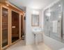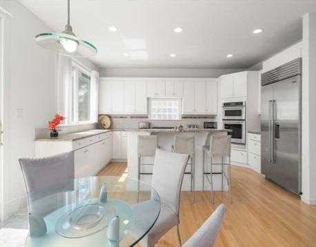 Enjoy expansive views in this stunning Farlow Hill contemporary residence located on the Newton/Brighton line. Streaming sunlight highlights stunning architectural features including soaring ceilings, oversized windows and a dramatic staircase in this open concept home. The marble Foyer leads to an open Great Room featuring a gas fireplace w/marble surround and surround sound system. The space flows into a sunfilled Kitchen w/white cabinetry, stainless appliances, granite counters, dining area and sliders leading to the deck. Double doors from the Great Room lead into a spacious Bonus Room currently used as an office. The second level features a large Master Suite with two WI closets, oversized windows and luxurious Master Bath. Three additional bedrooms, one w/ensuite bathroom. The walkout Lower Level offers a spacious Playroom Room w/wet bar, an add'l room, full bathroom w/steam room and sauna and stereo speakers in the ceiling. New HVAC, 2012 roof.
