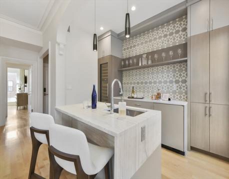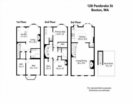 This stunning penthouse triplex at 128 Pembroke Street boasts 2,469sf, four bedrooms, three full and one half bathroom highlighted by a private roof deck, and off street deeded parking. This well appointed Brownstone offers a state of the art kitchen outfitted with Bosch and Sub-Zero appliances, a spacious primary suite with ample closet space and en-suite bath, a spectacularly appointed parlor, numerous gas fireplaces and gleaming hardwood floors throughout. The home is topped off by an approximately 500+/- sqft. private roof lounge, which features spectacular, unobstructed 360-degree views of the city. The home has been meticulously maintained and was just outfitted with a new roof and completely new HVAC system. This is a rare offering on one of the most coveted streets in the South End.