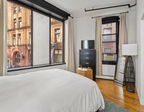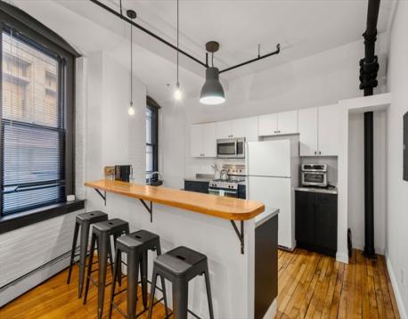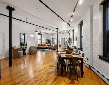 Location! Location! The best of Back Bay & South End. Nearly 1600 square feet of dramatic loft space, all on one floor! Currently configured as a two bedroom/1.5 bath home, but could easily be converted to a three bedroom/two bath with minimal work and still allowing for a copious living space and designated dining space to seat 8-14. Primary suite has attached bath, washer/dryer and tall windows.The second bedroom is on "The Nose" of the building granting this space Southern and Eastern light and is accessed by sliding warehouse doors. Over a dozen oversized windows in this phenomenal space featuring high ceilings, antique, factory hardwood floors, white brick walls and corner exposure. Open design kitchen w/ butcher block peninsula, perfect for entertaining & stainless countertops. This unicorn of a building recently had a new PVC roof, all new windows, high tech security system added, butterfly entry system added, pointing of the building & renovation of common areas. Pets welcome.