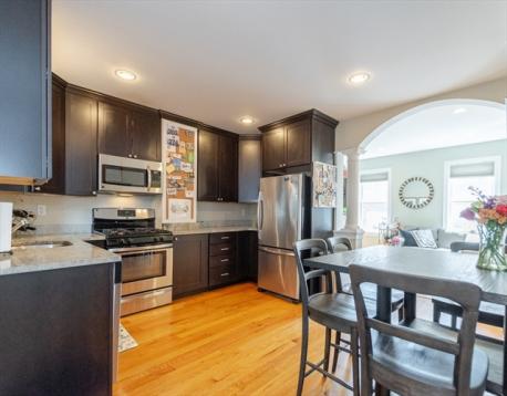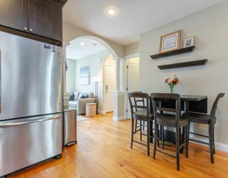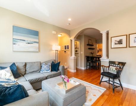 Tucked into one of Charlestown’s most sought-after neighborhoods, this sunny two-bedroom, one-and-a-half-bath condominium blends historic character with modern ease. Thoughtfully designed interiors offer a seamless flow for everyday living and entertaining, highlighted by generous natural light and refined finishes throughout. A gas fireplace adds ambiance and warmth to the charming living room, marked by a stunning archway into the kitchen. The open living space feels welcoming and polished, while the well-appointed kitchen is designed for efficiency and style. Two comfortable bedrooms provide flexibility for guests, a home office, or serene retreat. In-unit laundry adds everyday convenience, while the private patio extends the living space outdoors, perfect for morning coffee, evening gatherings, or a quiet moment to unwind. Close to shops, dining, and parks, this residence privacy, charm, and location. A truly special opportunity to enter Charlestown at an affordable price!