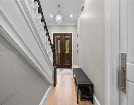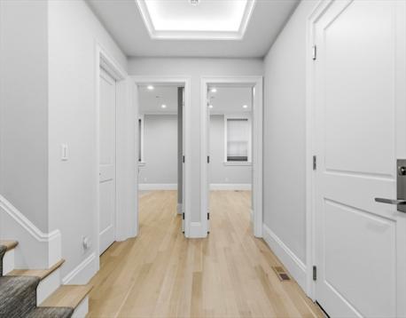 Set on Saint Botolph Street’s quiet, tree-lined block near Titus Sparrow Park, the Prudential Center, and neighborhood shops and restaurants, this two-level brownstone residence offers premier city living. Spanning just under 2,000 square feet and gut renovated in 2019, it features a clean, modern aesthetic that feels both classic and current.The main level showcases a 25-foot-wide open living and dining area filled with south-facing light from the triple bay window with stained glass. High ceilings, detailed millwork, and a gas fireplace define the space, while the kitchen includes Wolf and Sub-Zero appliances, stone countertops, and a walk-in pantry with custom cabinetry an additional wine fridge. The lower level includes three bedrooms, a full laundry room with ample storage, PLUS a den off the primary suite ideal for a home office, gym, or nursery. A rented parking space and private patio are located directly outside the back door with convenient direct entry into the unit.