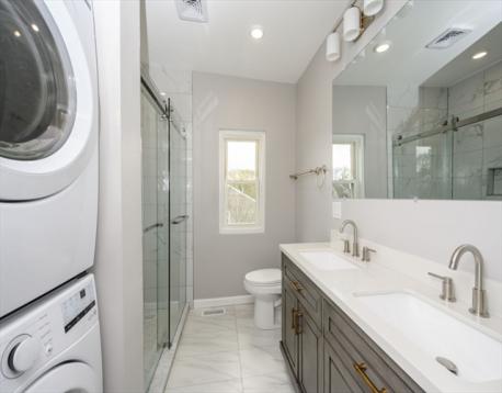 RENOVATED BRICK END ROWHOUSE 2-FAMILY WITH ADDITONAL LOT INCLUDED!! This is a great property for a large extended family! The upper duplex unit features 2 beautiful levels of living space (2nd and 3rd floors) and consists of 3 bedrooms and 2 full bathrooms, a new modern kitchen with shaker cabinets, SS appliances with quartz counters, hardwood floors, in-unit laundry, new hydronic central heat and a/c and 2 covered decks. The first floor consists of an amazing open floor plan 1-bedroom unit with new kitchen cabinets, new heating system and private deck. The additional 1920 square foot additional lot next door at 130 Ellington will be sold with the property and could possibly be used as off-street parking or an amazing side yard. The basement has a full walkout staircase with nice ceiling height that might be a candidate a future ADU unit. OPEN HOUSE FRIDAY 4-5:30pm and SUNDAY 1-2:30.