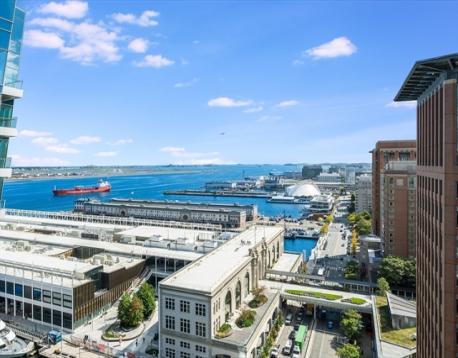 As the weather warms, it’s the perfect time to secure a home designed for summer living - ideal for enjoying long evenings on your private deck! A rare opportunity at EchelonSeaport - this is the first water-view terrace residence ever to return to market and one of only ~10 in the building. This 3-bedroom, 3.5-bath home offers sweeping harbor views from an expansive private terrace, plus a balcony off the primary suite. Thoughtfully curated throughout, features include custom closets, designer window treatments, and a sun-filled open-concept living space with a chef’s kitchen for effortless entertaining. Floor-to-ceiling windows enhance the natural light.Two garage parking spaces complete this offering. Residents enjoy 50,000+ SF of amenities including pools, fitness center, lounges, outdoor terraces, and 24/7 concierge—all in the heart of the Seaport.