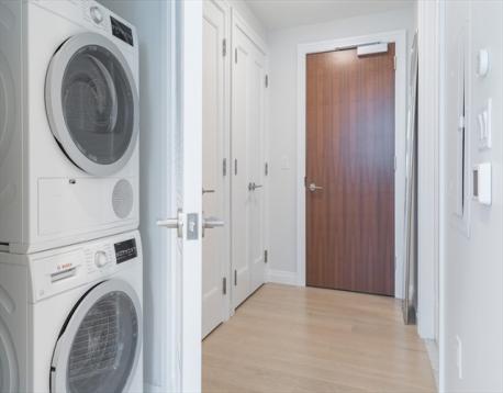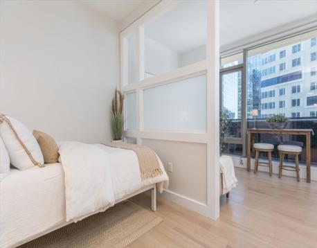 Experience elevated city living in this one-of-a-kind Studio+Alcove residence located on the amenity level at EchelonSeaport. This thoughtfully designed home offers a generous reach-in entry closet and an efficient layout complemented by soaring ceilings. Features include custom automatic Hunter Douglas shades, white oak flooring throughout, custom Italian cabinetry by Stevali, Bosch integrated appliances, a marble bath, and an in-unit washer and dryer. Ideal as a pied-à-terre, first home, or investment property. Private storage unit included. Residents of Echelon enjoy access to over 50,000 square feet of luxury amenities, including two outdoor pools, hot tub, fitness center, indoor basketball court, yoga studio, golf simulator, and a sky lounge with panoramic views.