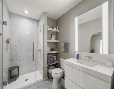 This 1BD + Study residence at Echelon Seaport offers a rare opportunity in the coveted “16” stack—the only 1+ layout with private outdoor space and direct harbor views over Seaport Boulevard.Thoughtfully enhanced with seller upgrades, this turnkey home includes motorized window treatments, a custom entry coat closet, and a built-out primary closet designed for elevated everyday living. The spacious study offers flexibility as a home office, guest room, or den.Interiors feature custom Italian cabinetry, quartz countertops, wide-plank white oak floors, and integrated Thermador appliances, delivering modern luxury and seamless function.Residents at Echelon Seaport enjoy 50,000+ sq. ft. of world-class amenities, including two outdoor pools, hot tub, fitness center, indoor sports court, yoga studio, golf simulator, Sky Lounge with panoramic views, and fire pits.Valet garage parking included.