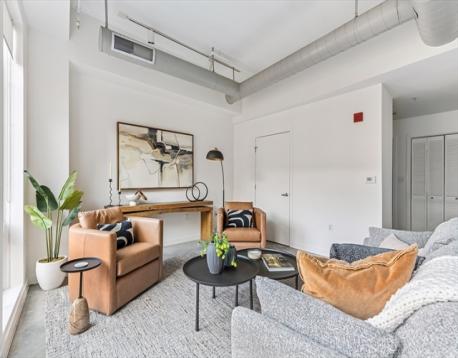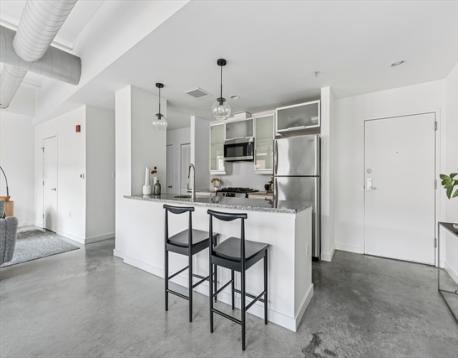 The epitome of SOWA, take the elevator up to this sunny one bedroom featuring a southern exposure, soaring ceilings and a quiet courtyard view. This loft one bedroom condo has an airy feel and hip vibe. Stylish polished concrete floors run throughout the spacious condo's open floor plan with clearly defined area for dining as well as a generous living room accented by a Juliet balcony. The kitchen island features granite countertops and anchors the cooking space at the center of the home. A tiled bathroom is tucked privately away. In-unit laundry adds to easy living as does professional management. Enjoy evenings on the common roof deck, head out to the nearby conveniences at Ink Block like Bar Mezzana, Kaia, Whole Foods, CVS, Tatte, etc as well as Restaurant Row favorites like Barcelona, Picco and Life Alive. With vibrant regularly scheduled SoWa events in such close proximity this is your chance to join one of Boston's most beloved neighborhoods!