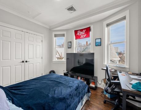 Situated on a pronounced corner lot is an exquisite two family residence. The home underwent an extensive restoration and renovation which included a third floor addition. Comprised of two palatial units. The first floor is an expansive and open residence offering 2 bedrooms, 1 bathroom and office. The upper floor duplex presents 5 bedrooms, 2 full bathrooms, a lofted study and direct access to front facing deck space overlooking manicured grounds. Accented by a 3rd floor primary bedroom offering 3 exposures and a spa inspired bathroom. Both units feature private laundry, central HVAC, hardwood floors and tall ceilings. The kitchens are the envy of even the most discerning chef with abundant cabinet storage, spacious stone counters and stainless appliances. The building has 4 decks, off street parking for 6 cars and direct access to the basement with generous storage for all. A perfect opportunity for a primary home owner or investor looking for a turn key portfolio addition.