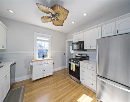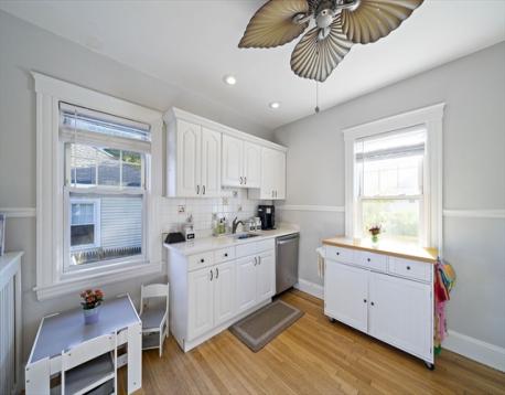 Welcome home to this inviting single-level charmer—an ideal fit for downsizers, first-time buyers, or anyone seeking a condo alternative in one of West Roxbury’s most desirable neighborhoods. Nestled on a beautiful tree-lined street, this home offers the ease of single-level living with a sunny living room that flows to the dining area and refreshed kitchen featuring updated counters and newer appliances. Hardwood floors and high ceilings create a warm, open feel throughout. Two comfortable bedrooms offer great closet space. Modern bath with tub and heated floors. Step outside to a fenced backyard with lush grass—perfect for entertaining, play, or gardening—plus a new Trex deck, storage shed, and two off-street parking spaces. A versatile lower-level bonus room with separate entry—ideal for a playroom, home office or gym—complete this move-in ready gem close to Centre Street restaurants and shops, I95, Millennium Park & the commuter rail.