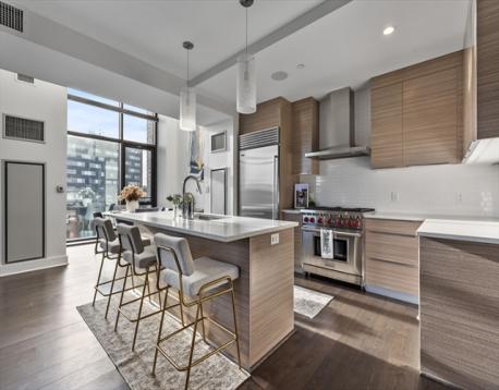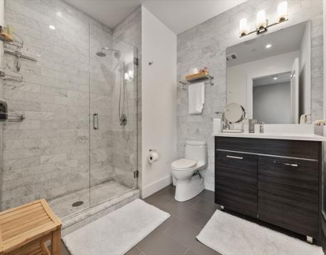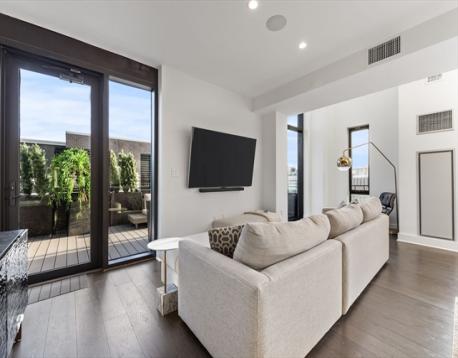 Steps from the Broadway T and South Boston’s best restaurants and cafés, this sun-drenched duplex blends dramatic design with full-service living. Double-height ceilings and expansive south-facing windows anchor the main level, where an open living area flows seamlessly into a Wolf/Sub-Zero kitchen. Positioned off the entry for added privacy, the den serves as an ideal office or bonus room and is complemented by a half bath and in-unit laundry.The upper level offers a serene primary suite with custom storage, a guest bedroom, and a second full bath. A major highlight is the 440+ sq. ft. private roof deck featuring panoramic city views, an unmatched extension of your living space.Residents enjoy luxury building amenities including full concierge services, valet, a fitness center, and two garage parking spaces. This is elevated South Boston living with immediate access to the Seaport and downtown.