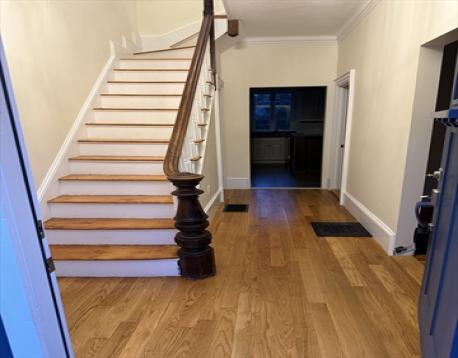 Modern Tri-Level Townhouse in the Heart of Roslindale Village. Newly, gut-renovated, quality craftsmanship and thoughtful design with stunning hardwood floors throughout. The main level features soaring ceilings, and a stunning kitchen with custom cabinetry, granite countertops, and high-quality fixtures. The kitchen blends into the dining and living areas, with access to a private patio. Upstairs, the spacious primary suite offers a luxurious, easy-entry glass-enclosed shower and a walk-in closet with custom built-in cabinetry. Two additional generously sized bedrooms provide flexible space for a growing family, guests, or a home office. With 3 bedrooms and 2.5 baths, this home delivers both comfort and functionality. Enjoy unmatched convenience with close proximity to public transportation, the Roslindale commuter rail, top-rated local restaurants, and one of the largest farmers markets in the city. A rare opportunity to own in one of Boston’s most sought-after neighborhoods.