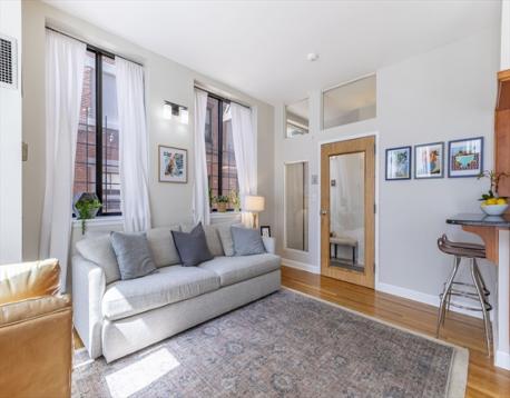 OPEN HOUSES CANCELED. OFFER ACCEPTED. Welcome home to this bright, pet friendly one bedroom condo in the heart of the North End's Waterfront neighborhood featuring dramatic floor-to-ceiling windows that flood the space with natural light throughout the day. This thoughtfully designed home offers an open and airy layout, blending contemporary style with urban charm. Enjoy the convenience and privacy of your own separate entrance—perfect for a seamless city lifestyle. The monthly condo fee includes heat, hot water and central air. Common laundry and private storage are located in 142 Commercial. The building features a common roof deck with stunning city and harbor views. Ideally located just steps from renowned dining, historic streets, and the Harborwalk, this sun-drenched residence is a rare find in one of Boston’s most sought-after neighborhoods.