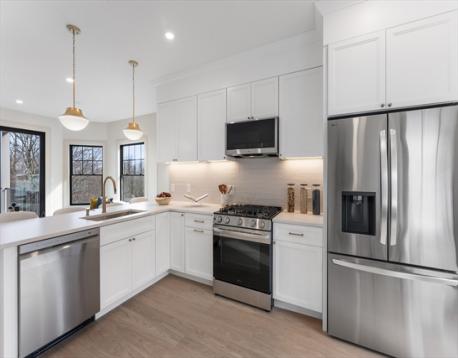 142 Metro: Welcome to unit #1, a 1,722 sqft. newly renovated luxury residence offering four bedrooms and two-and-a-half baths, designed for elevated city living. This sun filled unit features an open concept layout with engineered hardwood floors, quartz countertops, stainless steel appliances, and an oversized kitchen island ideal for both entertaining and everyday living. Expansive living and dining areas are complemented by a flexible bonus room perfect for a home office, private gym, or playroom. Perched atop a hill with sweeping city skyline views from every level, the home offers exceptional natural light, two parking spaces, and a refined sense of privacy. Located just moments from premier shopping, dining, public transportation, and major commuter routes.